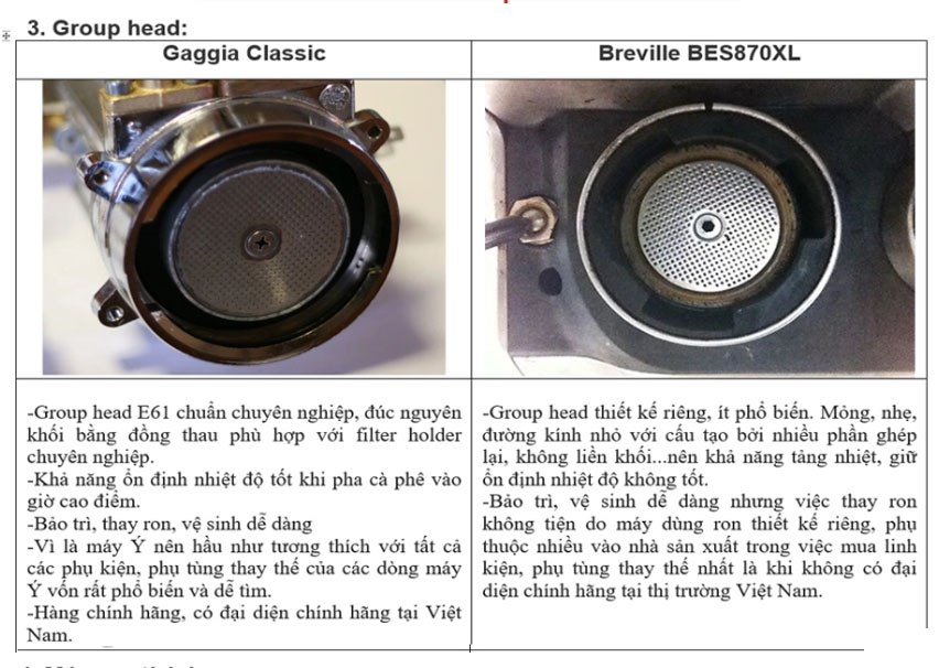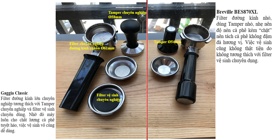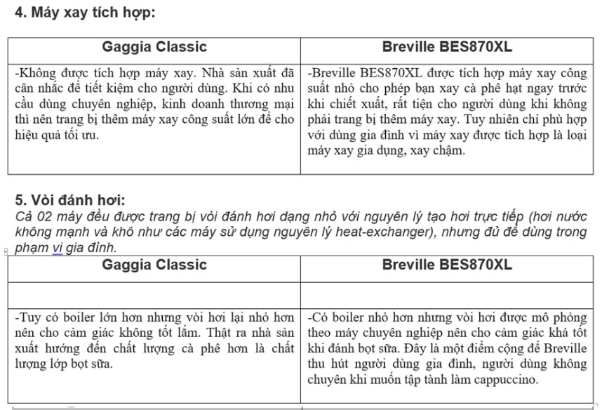 Những ưu điểm vượt trội của máy pha cà phê Gaggia Classic về độ bền và chất lượng cà phê hay sự tiện dụng của Breville BES870XL đã được chia sẻ trong nhiều bài viết trước đây nên trong khuôn khổ bài viết này chúng tôi chỉ tập trung vào việc phân tích kỹ các yếu tố tạo nên sự khác biệt giữa 02 dòng máy nổi tiếng này để từ đó người dùng chọn được dòng máy phù hợp nhất với mục đích và yêu cầu kinh doanh của mình.