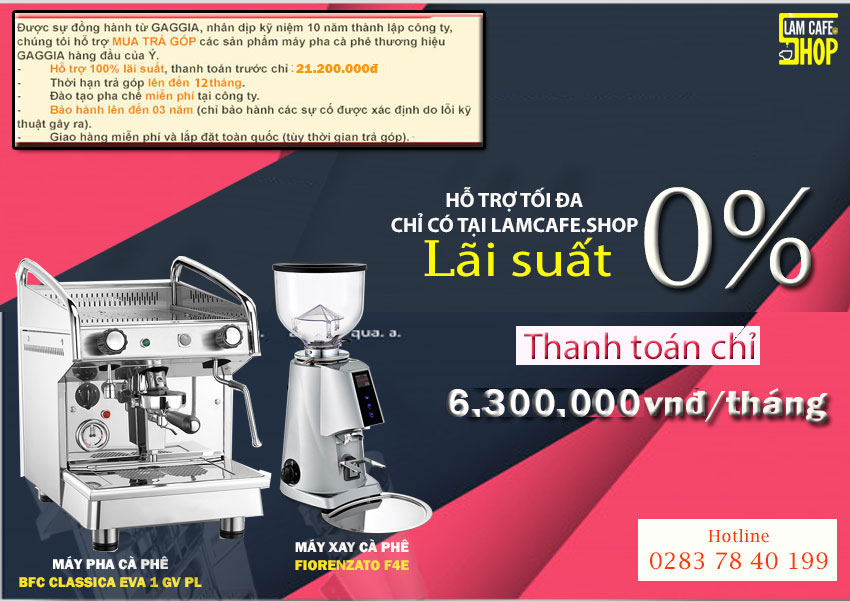 ĐAM MÊ và muốn KHỞI NGHIỆP trong ngành kinh doanh cà phê đầy tiềm năng, nhưng bạn chưa thể thực hiện được ngay KẾ HOẠCH ấp ủ của mình vì thiếu vốn. HÃY tham gia chương trình MUA trả góp máy pha cà phê của chúng tôi. Hỗ trợ lên đến 200 triệu, với thủ tục vô cùng đơn giản